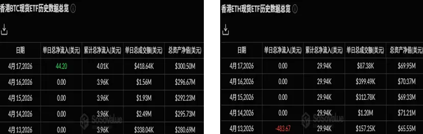 香港比特币现货 ETF 净流入 44.20 枚比特币