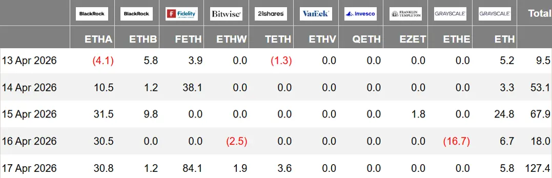 上周,美国以太坊现货 ETF 三日净流入,总净流入 2.75 亿美元,总资产净值达 142.6 亿美元。