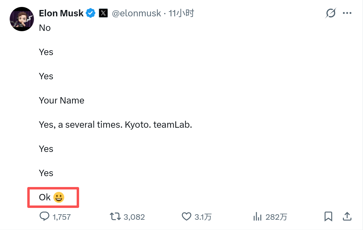 马斯克应承下,「马上就回」。这一「信号」也被链上市场迅速捕捉到。