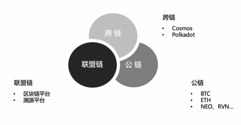 根据区块链的使用范围和准入权限的不同,区块链大体可分为公链、联盟链和私有链三种,所谓公链即面向大众,不需要任何许可,人人皆可参与使用;联盟链即面向行业阵营,需要一定的许可才能加入,譬如银行系统、保险系统、公安系统等,系统内部人员得到许可才能使用;私有链即单机链,公司内部数据库,不对外开放。区块链发展至今,已有成百上千个公链和联盟链项目,由于不同的链与链之间是平行空间,链上数据完全隔离,也就形成了一个个数据孤岛,且数据冗余程度远比互联网时期更甚,其中,第一代区块链网络主要以公链为主,第二代区块链网络包括公链、联盟链、私链,而第三代区块链网络主要是跨链。