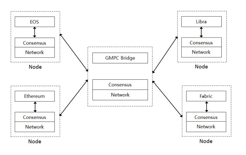 与跨链不同,GMPC的混合链不仅支持单链、公链的联通,还支持跨链之间,甚至于对联盟链的互操作。简单的来说,即GMPC能接受任意一种底层区块链平台的跨链交易。