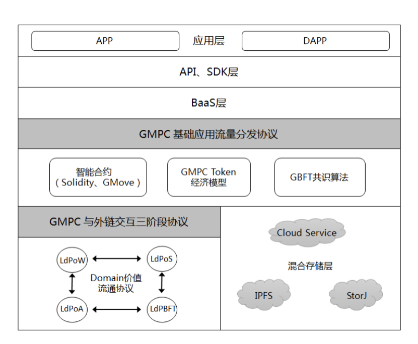 在以上核心要素的要求下,GMPC设计了面向逻辑分层的混合链分层架构,如下图所示: