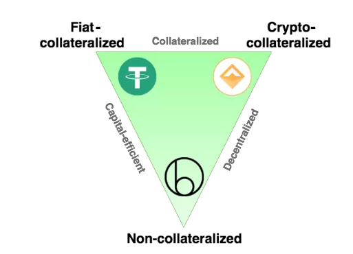 “稳定币有三种:法币抵押型、数字资产抵押型和无抵押算法型。” 这种归类已经成为了分析稳定币的流行视角。