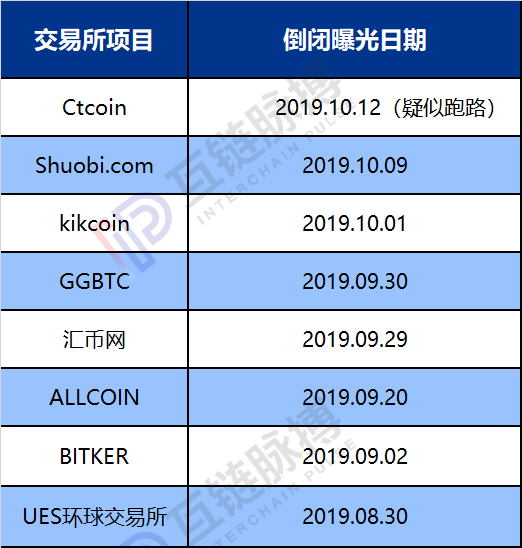(2019年8—9月倒闭或跑路交易所统计)