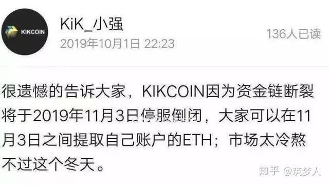 10月1日,Kikcoin交易所宣布因资金链断裂,将于11月3日停服倒闭……