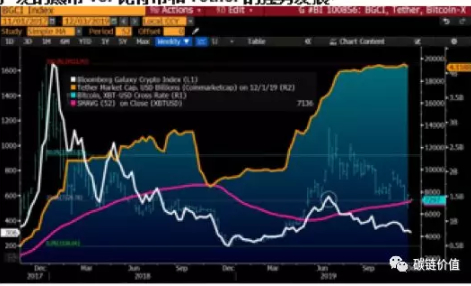 Tether是一个被广泛采用的加密货币赢家,有何含义。Tether是市值的快速增长,正在进一步拉大比特币与其他投机性数字资产(山寨币)之间的差距。诸如Tether之类的稳定币暴露了许多所谓加密货币的谬论,这也提升了比特币在加密货币市场里扮演“数字黄金”的价值。我们的分析图表里描绘了Tether和比特币市值上升的趋势,实际上你会发现它们的走势都处于有利位置。相反,加密指数Galaxy Crypto Index却陷于熊市的25%复苏关口以下。