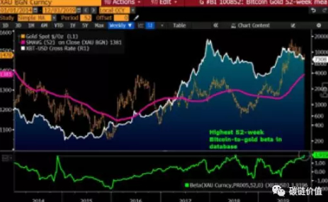 在我们看来, 比特币交易更接近于黄金,贵金属同样具有被投资者看涨的“问题”。比特币对黄金价格“52周beta”指标增长了两倍,并且创下了自2010年以来的最高水平。不管是比特币还是黄金,现在都已经从熊市中抽身,并且在2019年创下了较高的投资回报。黄金今年创下了近八年来的最大涨幅,也表现出了继续走高的态势,而今年比特币的上涨态势几乎可以和2017年一较高下。
