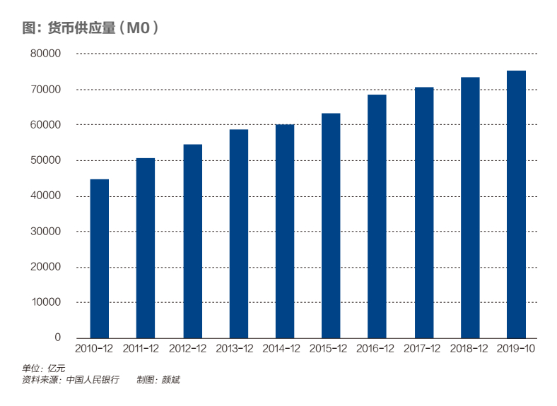 此前,某互联网金融从业者表达了自己对现金的观点:现金不应只包括纸质现金,还应包括央行认可的所有支付机构发行的支付工具。央行公布的最新金融数据显示,截至10月末,流通中货币(M0)余额7.34万亿元,同比增长4.7%,当月净回笼现金734亿元。
