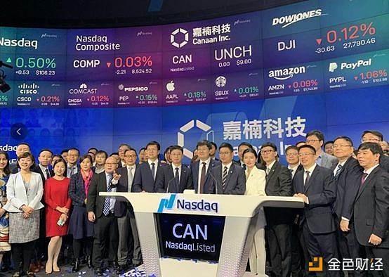 四、第二大比特币矿机厂商——嘉楠耘智,登陆纳斯达克11 月 21 日,在众人的期待中,全球比特币矿机第二大厂商嘉楠科技成功登陆美股纳斯达克,股票代码为 CAN,发行 1000 万股 ADS ,美股定价 9 美元,摘得「全球矿圈第一股」的桂冠。