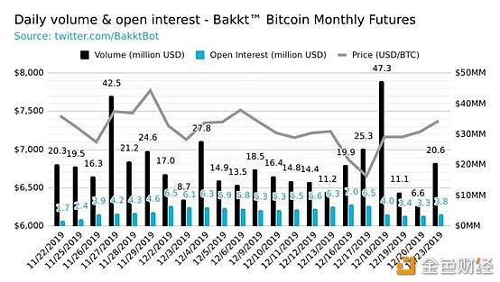 11 月底,Bakkt 的日交易量一度站上 4000 BTC,一扫当初刚开盘时的颓靡惨淡,12 月 18 日 Bakkt 日交易量更是一度站上 6601 BTC 的高点,交易金额相较底部上涨百倍有余。