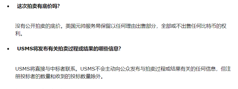 除此之外,美国司法部针对本次竞拍的相关疑问给出了很全面的答案,有两个问题也值得注意一下: