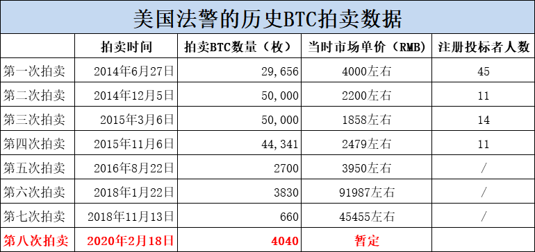 美国法警拍卖的大约4,040.54069820枚比特币,全部来源于行政没收和法律案件,参与拍卖的人需要先缴纳20万美金的保证金,如果竞拍失败,保证金会退还。