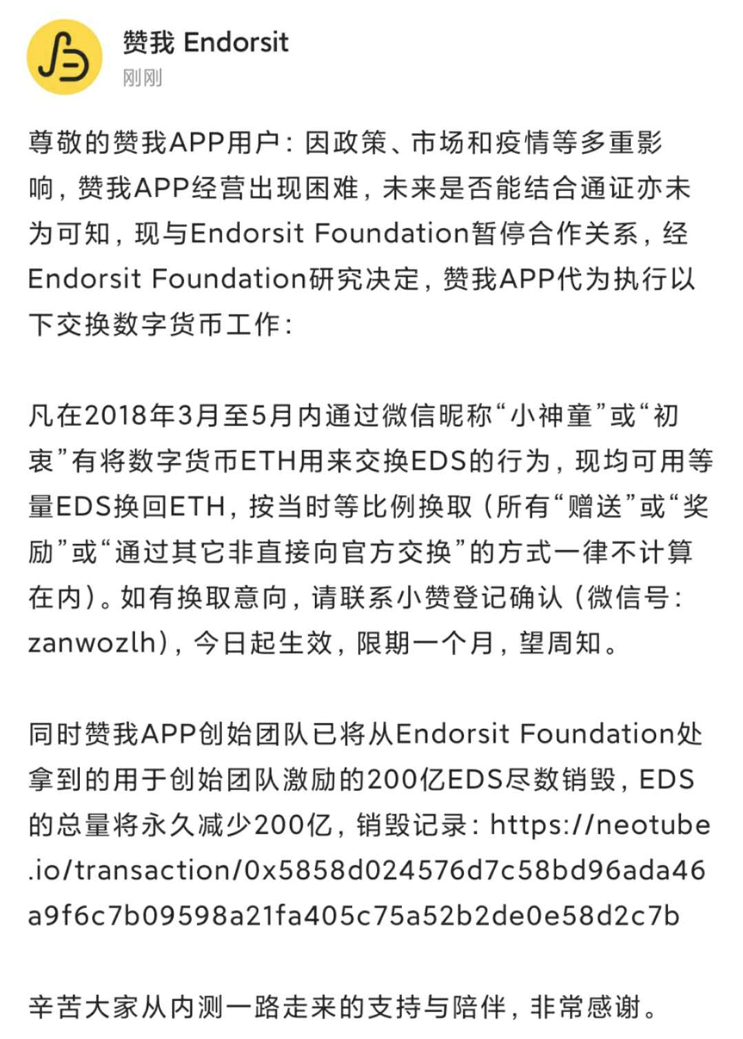 在2018、2019年有太多的区块链垂直内容平台冒出来,可是经过两年的熊市,大多都已死掉了,赞我也开始退币了,不过项目方能做到这样,还能按照之前的认购比例退币,在币圈也算 是非常少见的了,当然了后期从交易所买的就不能退了。