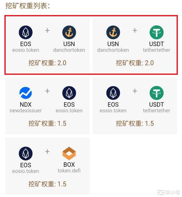 目前做市挖矿,权重最高2.0的有2个交易对,3个相对高的交易对。后续可能会根据DAO(社区治理)提案变更权重系数、增减交易对。最新的做市权重请参考BOX DAO第5号提案。