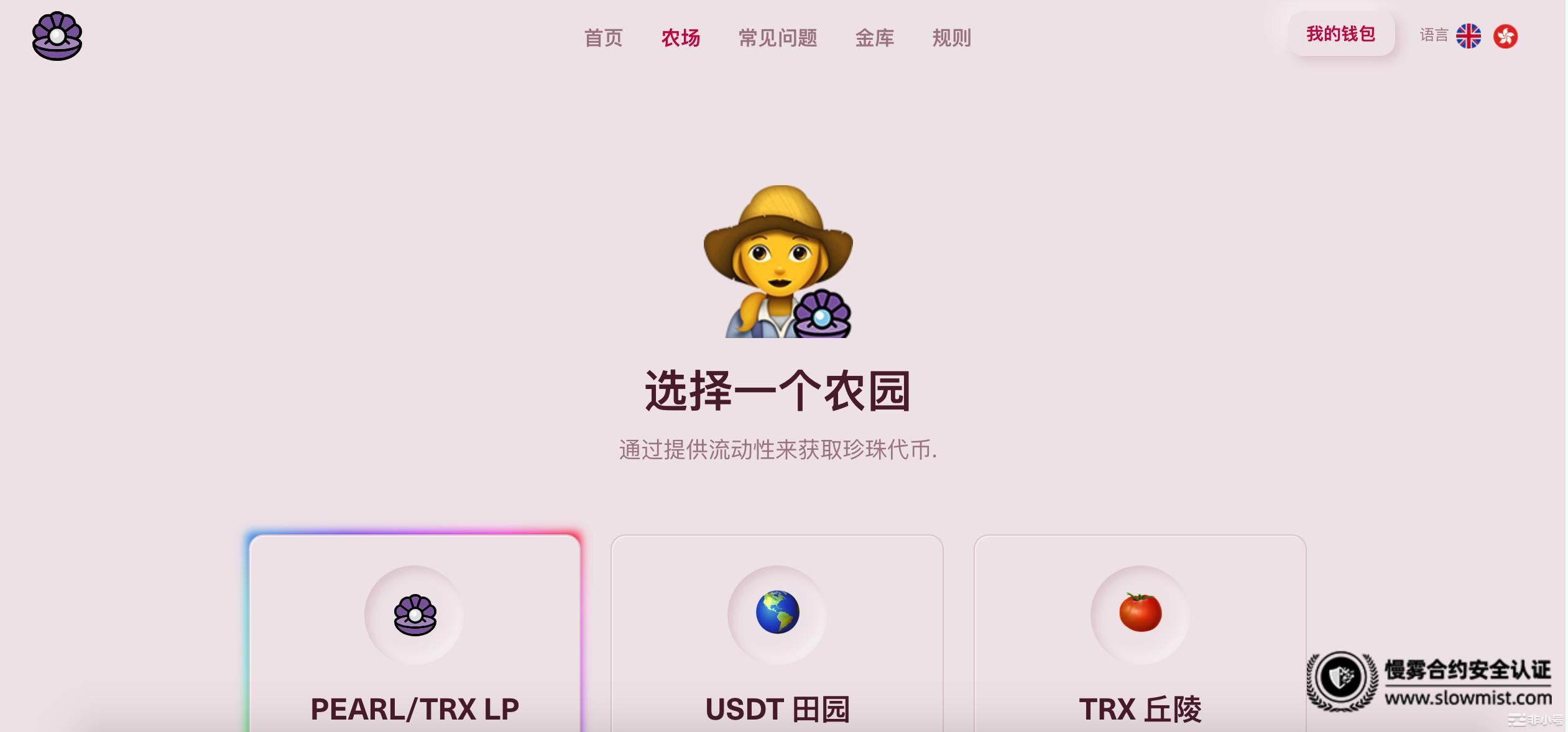 在最近如火如荼的DeFi挖矿浪潮中一个个体验下来,发现波场的这个珍珠(Pearl)挖矿的体验是最顺滑的。相比以太坊上高昂的Gas费以及卡的一比的网络这个体验好太多了,且他们的合约代码也已经通过国内顶尖的安全团队慢雾团队的审核;这么好的DeFi挖矿项目全网搜了一下竟然没看到有教程,那就写一个吧。