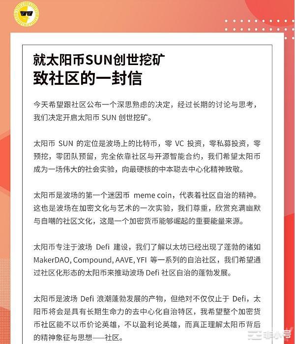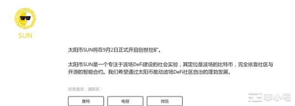 本文与SUN币项目方等相关团队没有任何宣发合作。