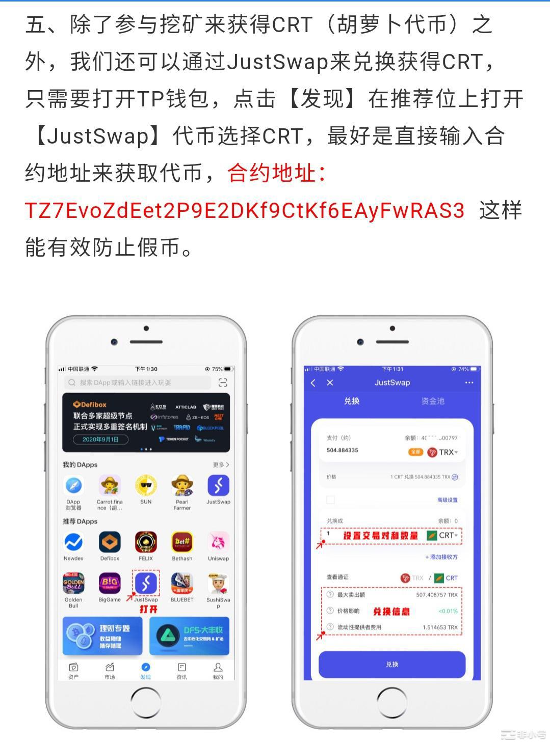 crt胡萝卜挖矿教程(波场系列) 小白菜也是菜 2020年09月03日 07:42 微信扫一扫分享到朋友或朋友圈 项目简介: Carrot是一项实验性协议,以可编程货币和治理方面最激动人心的创新为基础,最初的目标是每CRT 1美元,它采用了一种公平的分配机制来激励关键的社区成员积极掌握治理。 CRT并非本着分配给创始团队的一部分资源,而是本着YFI的精神进行分配:没有开采前,没有创始人股份,没有风投利益,是机会均等的股权分配,以吸引广泛且愿景一致的人社区来管理协议和令牌的未来。