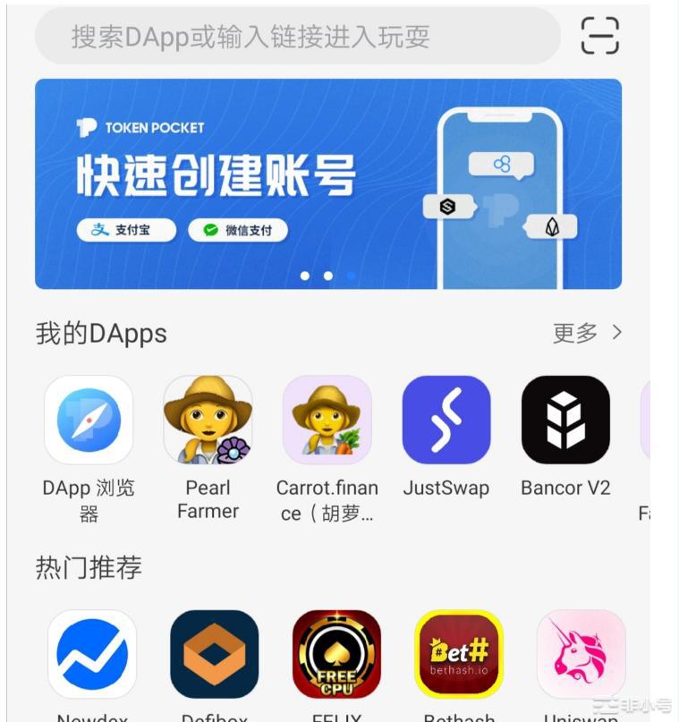 1. 在TP钱包里面,下面导航栏最中间找到发现的按钮,点进去,就会出来各种应用。