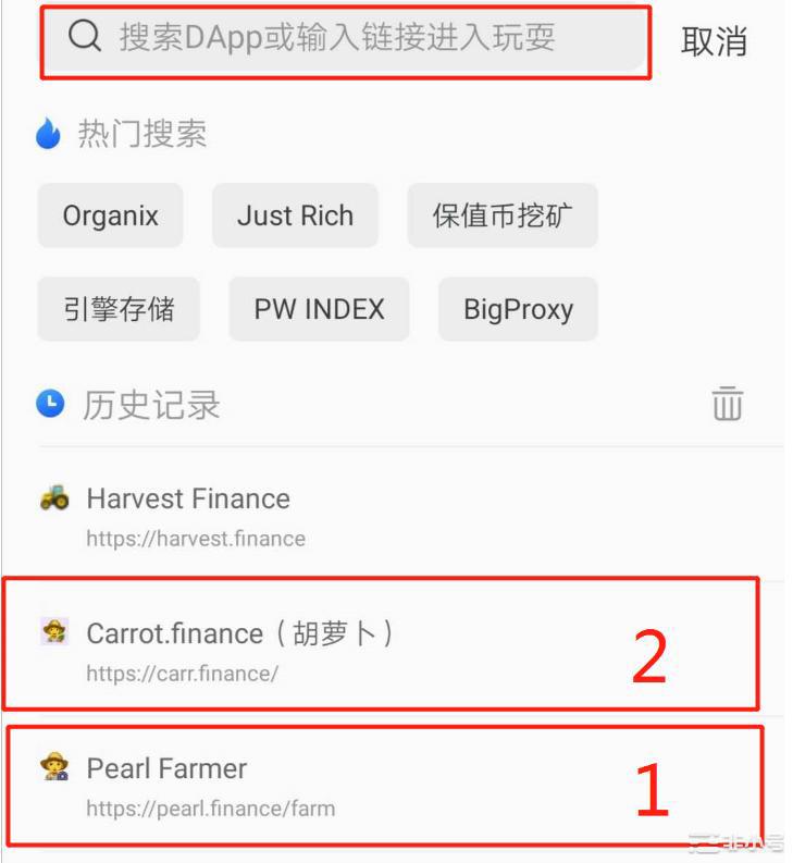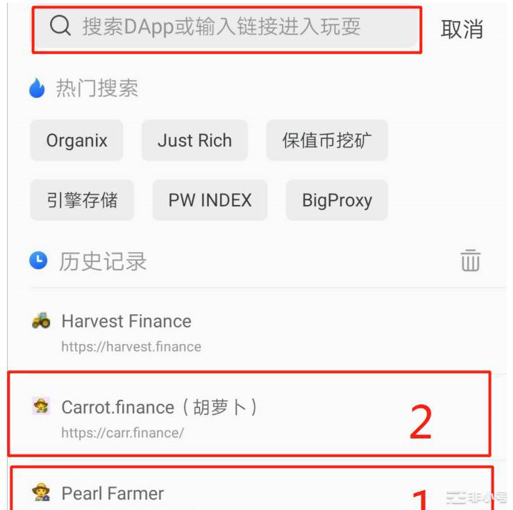 3. 在最上面的搜索框中输入珍珠平台进行搜索,网址是 https://pearl.finance 。
