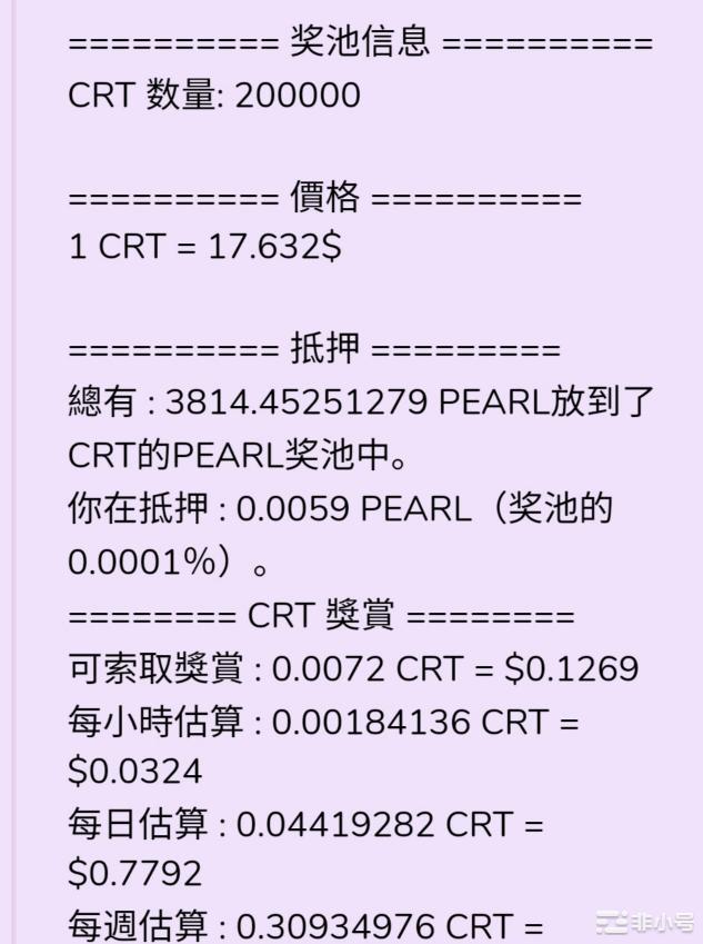 到目前为止用USDT挖珍珠的收益率为日化3.0584%,按照这个比例算下来年化为1116.3%;计算的时候pearl价格为 2890美金。