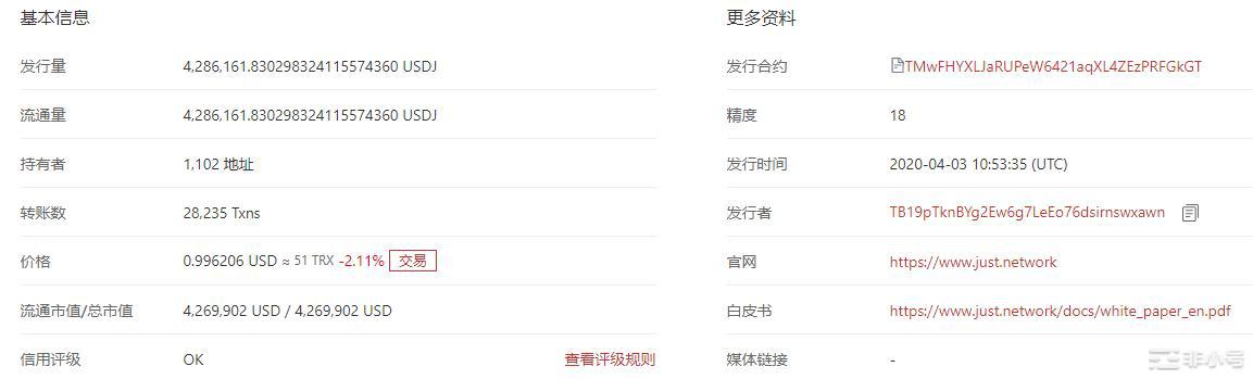 【USDJ代币信息】:
