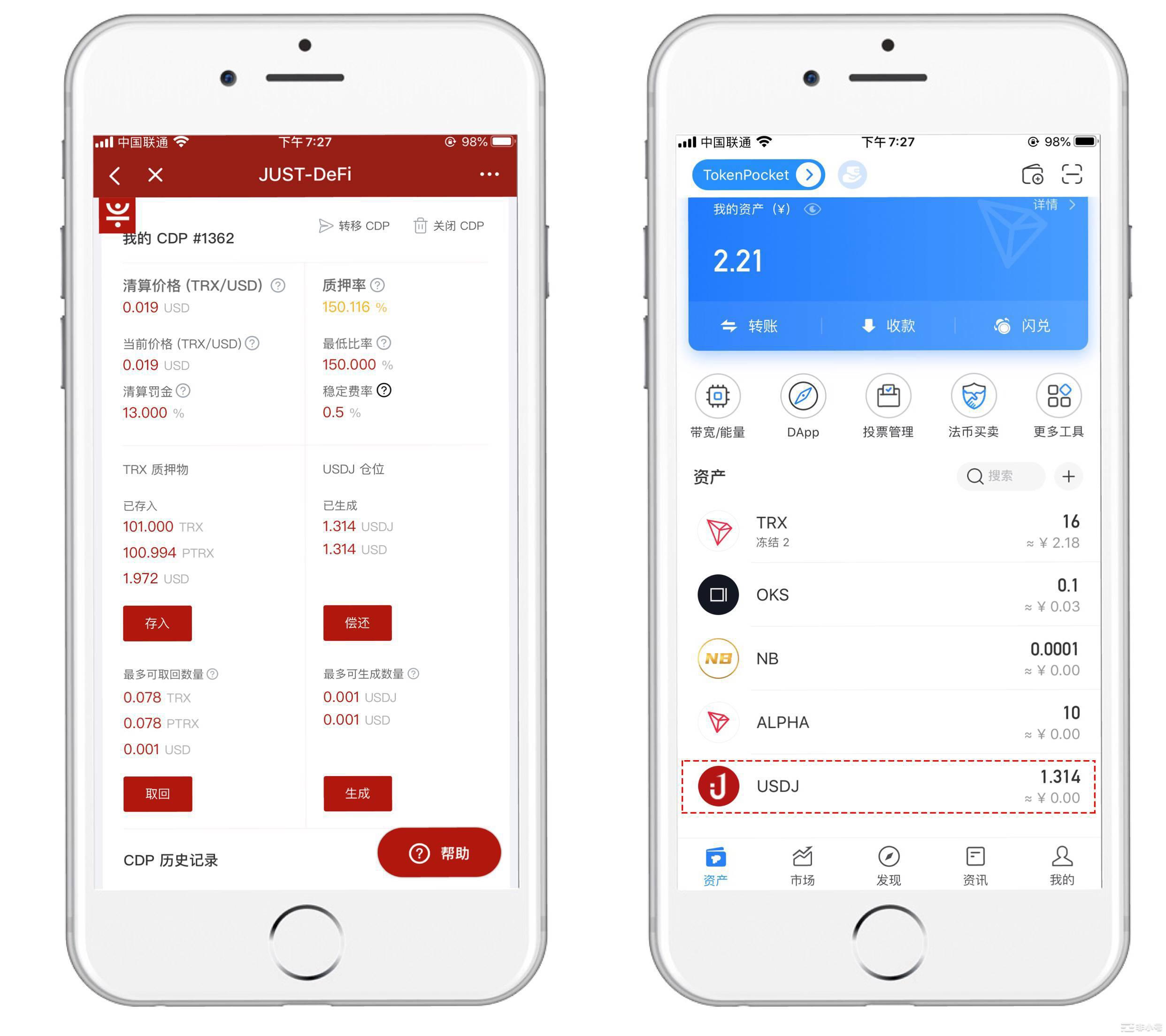USDJ由波场网络中的去中心化智能合约发行,任何人都可以通过抵押TRX发行USDJ。当USDJ被发行出来后,通过抵押债仓(CDP)和自动化反馈机制支撑USDJ的价格稳定在和美元保持1:1,从而与其他任何数字资产一样自由流通。