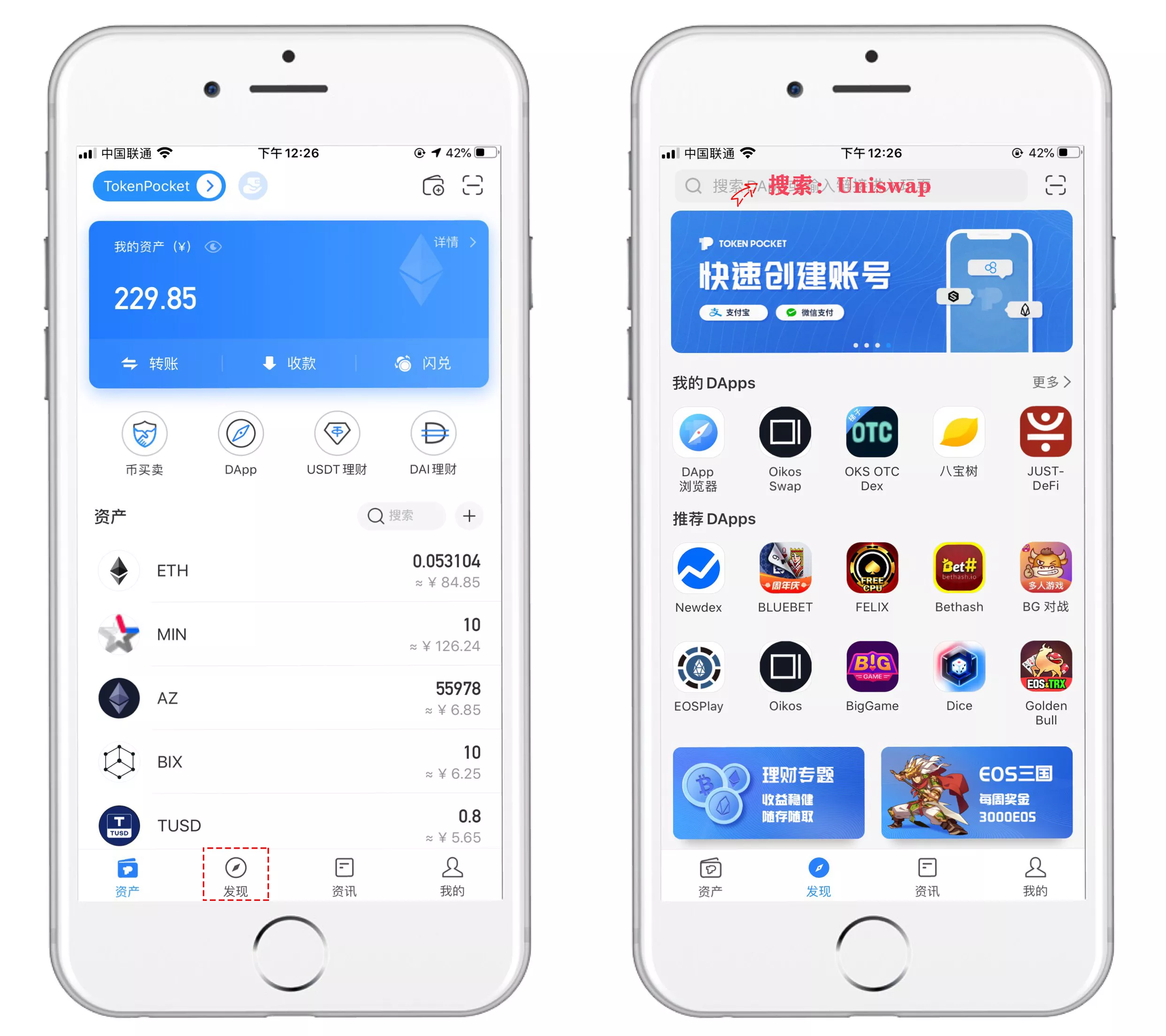 下面为大家演示下通过TP钱包使用Uniswap的操作过程。