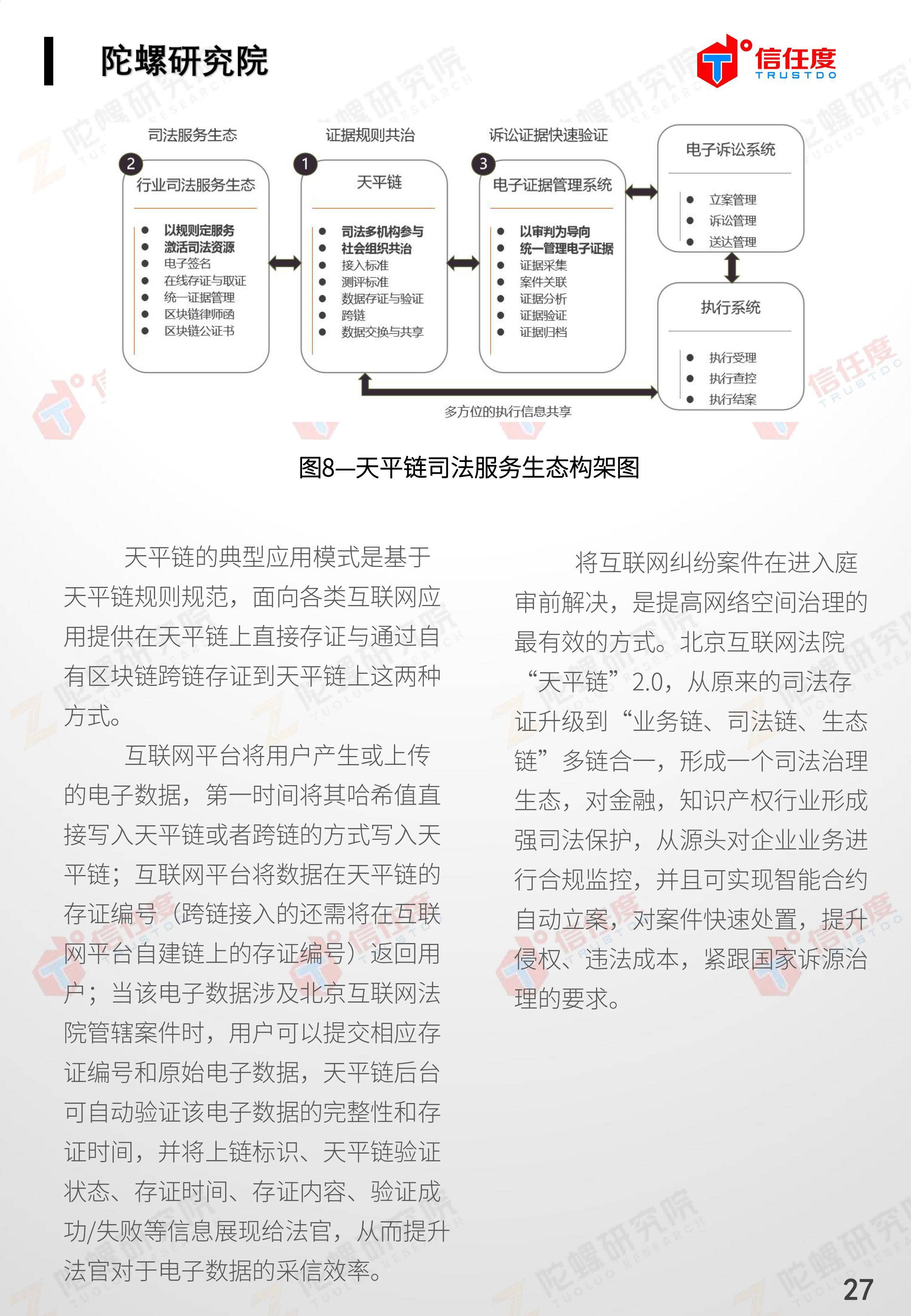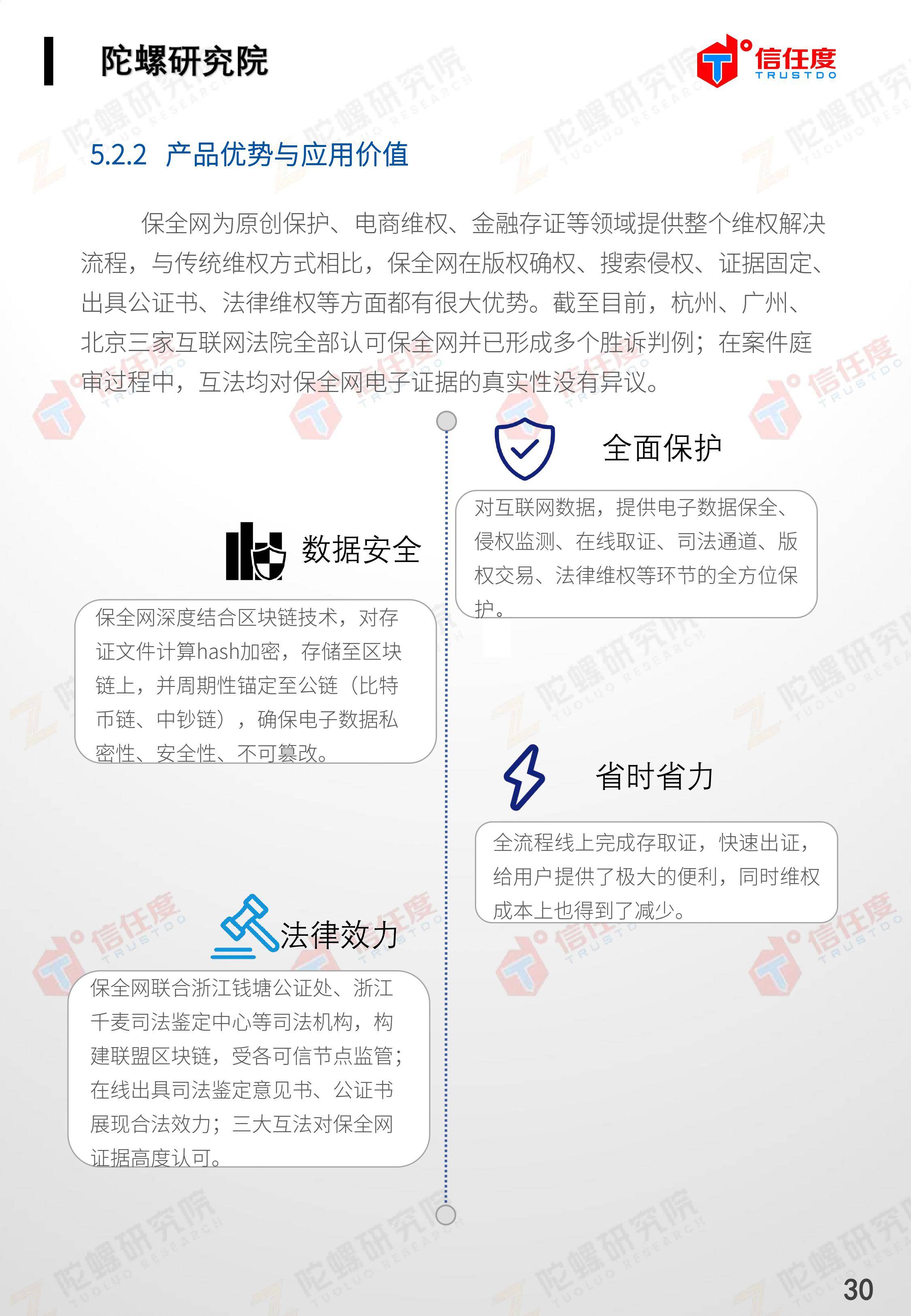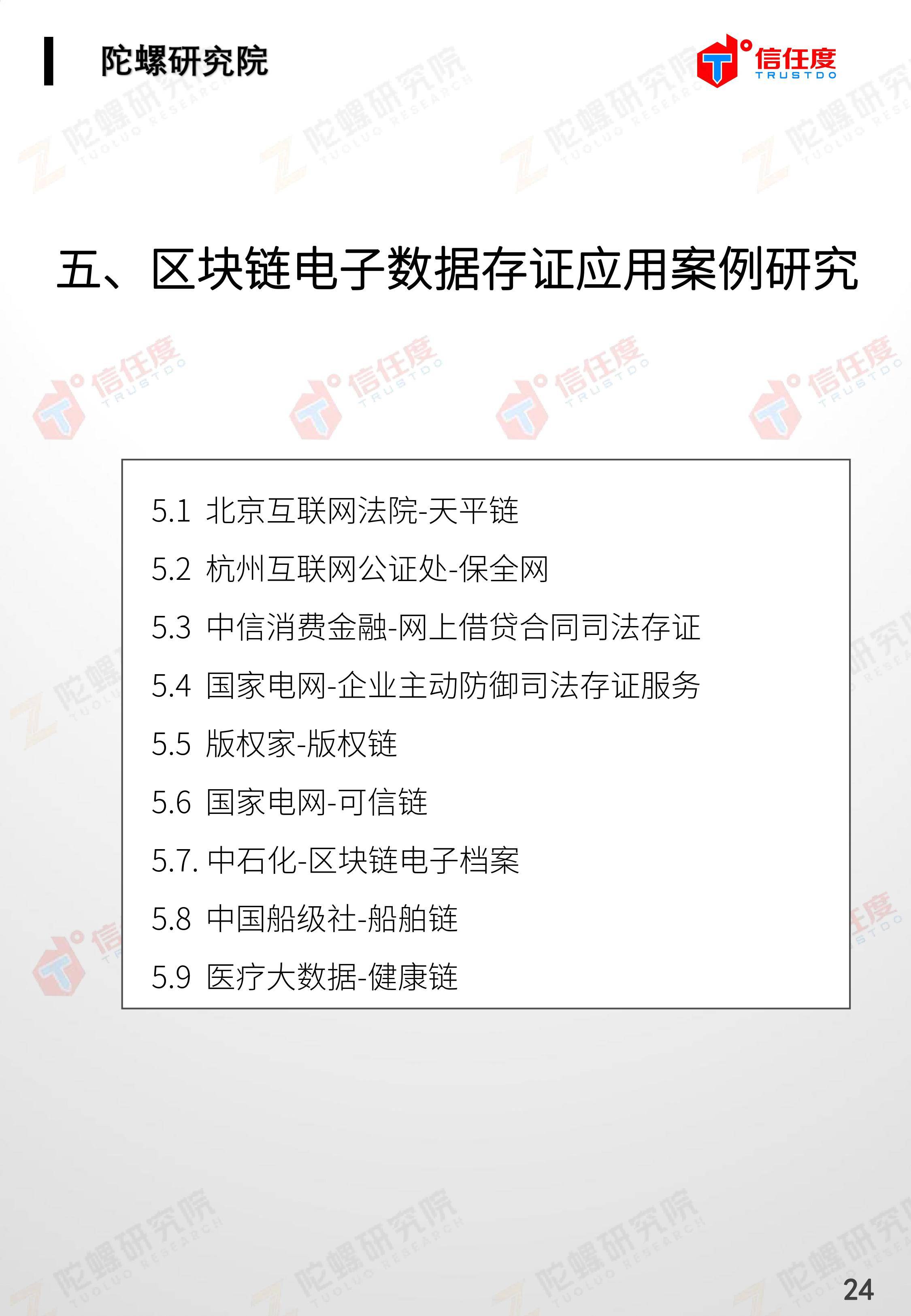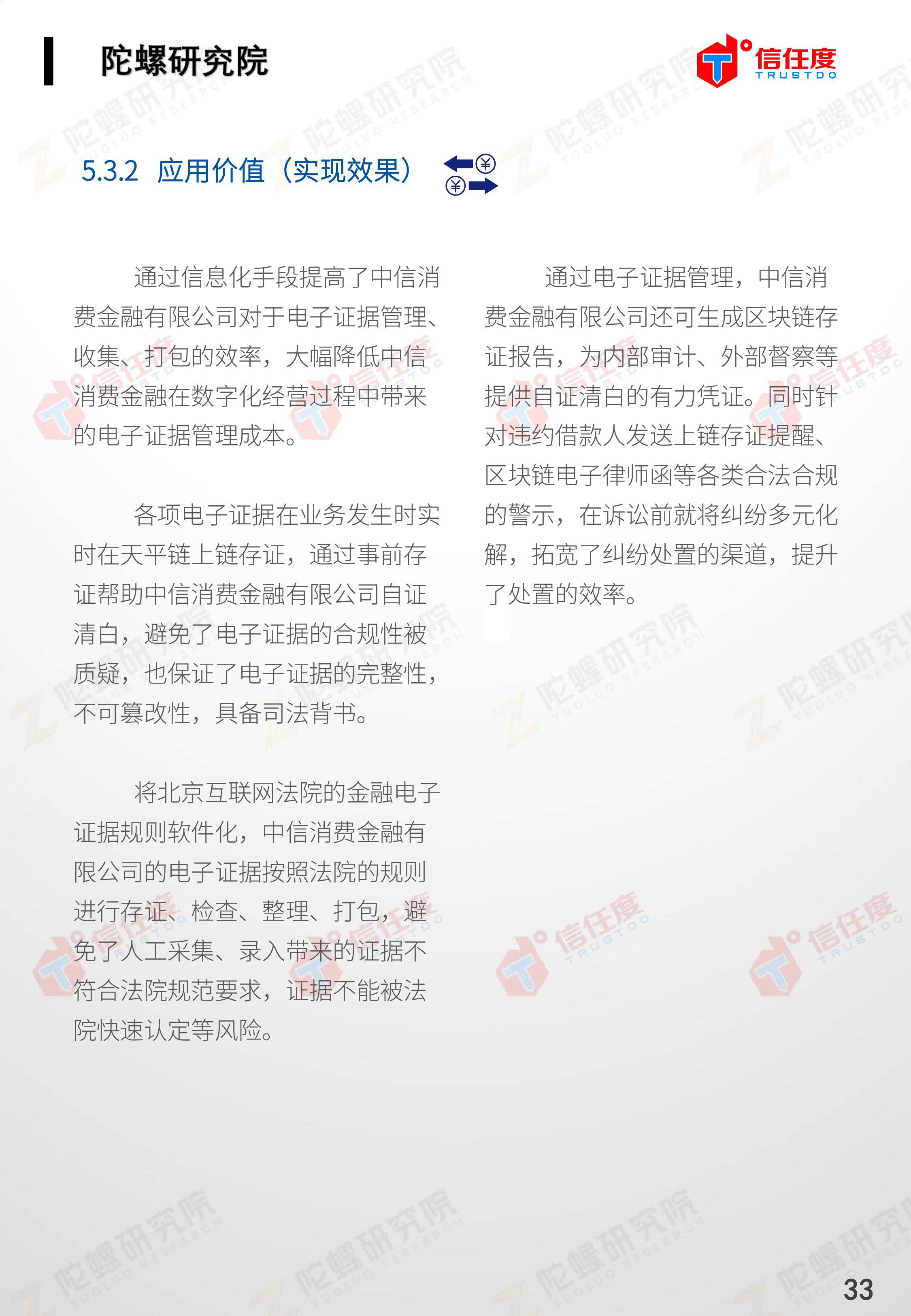 在此背景下,由陀螺研究院与北京信任度科技有限公司联合撰写,清华x-lab数权经济实验室、深圳市信息服务业区块链协会、碳链价值、网易区块链、商业科技观察、算力智库、数秦科技、火星财经、达瓴智库联合发布的《区块链司法存证应用报告》面市,本报告从电子数据存证背景入手,对当前电子数据存证司法应用存在问题进行了分析,介绍了区块链在电子数据存证中的应用价值,并针对区块链存证的应用场景与实际案例开展了深入研究,旨在加深社会大众对于区块链司法存证的理解,推动区块链在司法存证领域迸发出更大的价值。