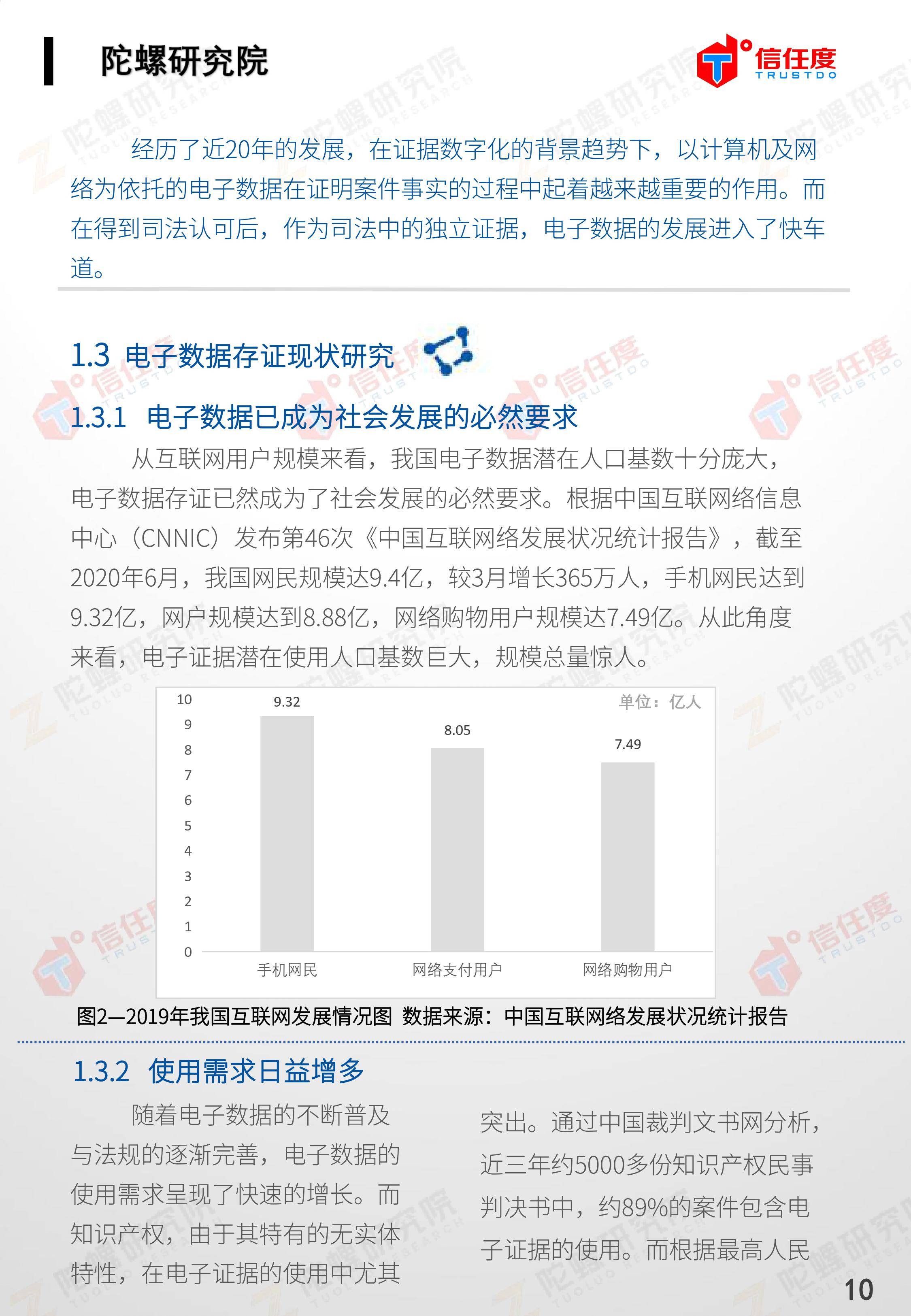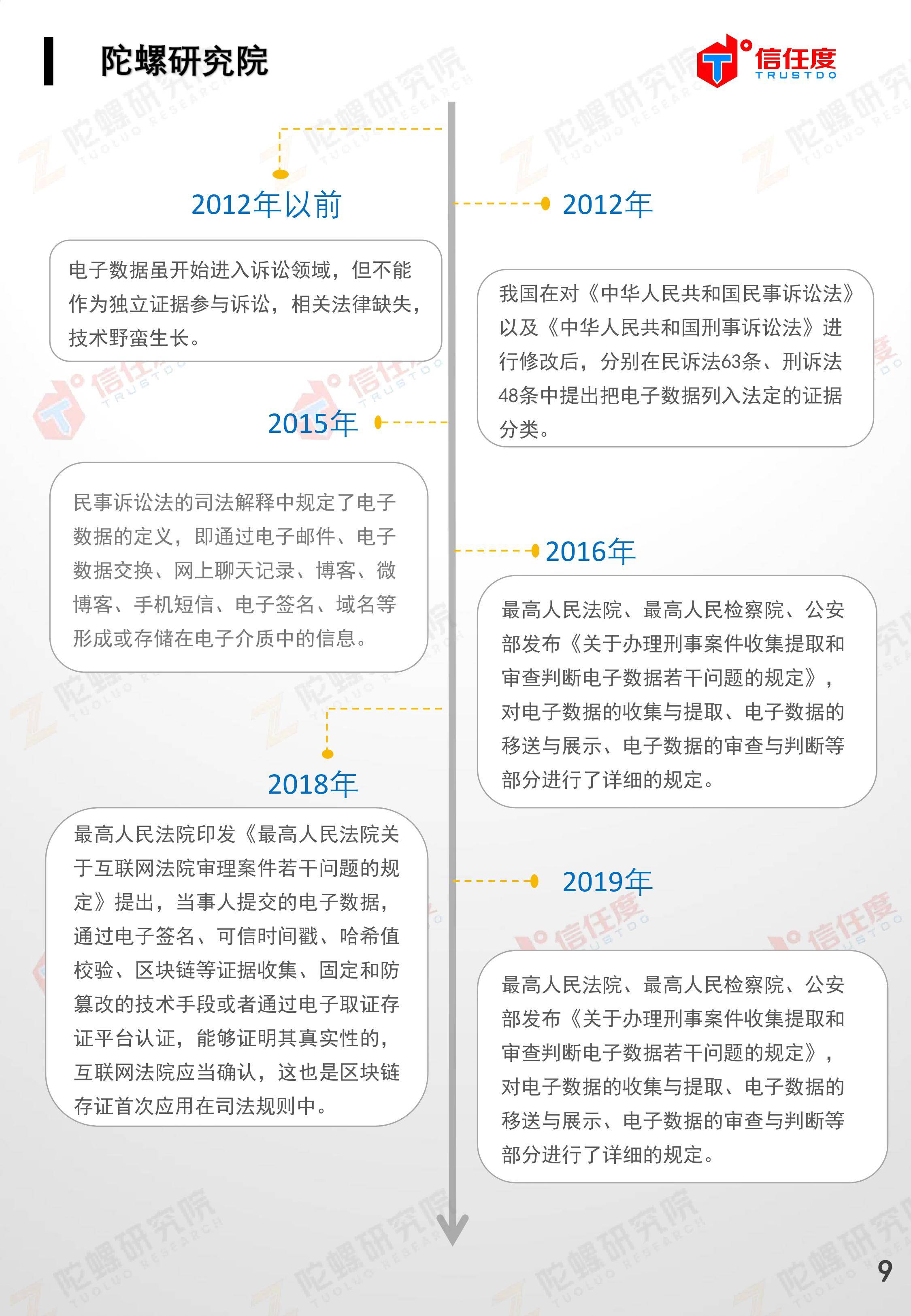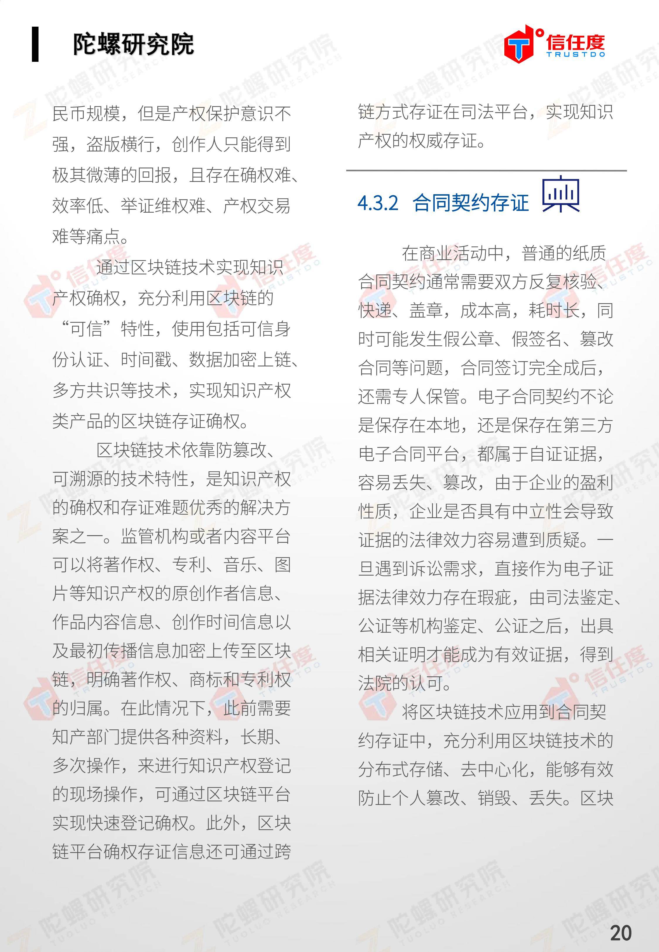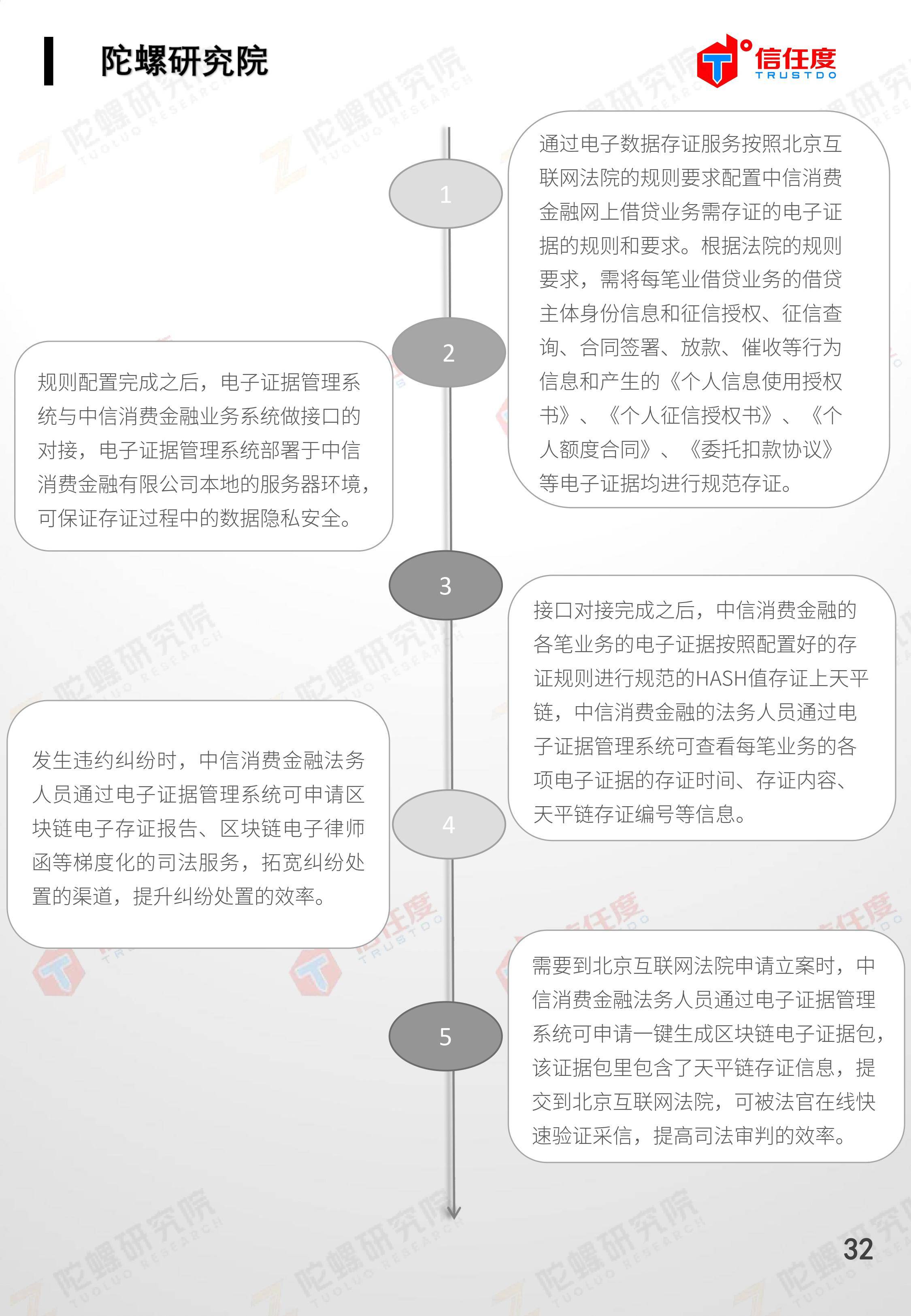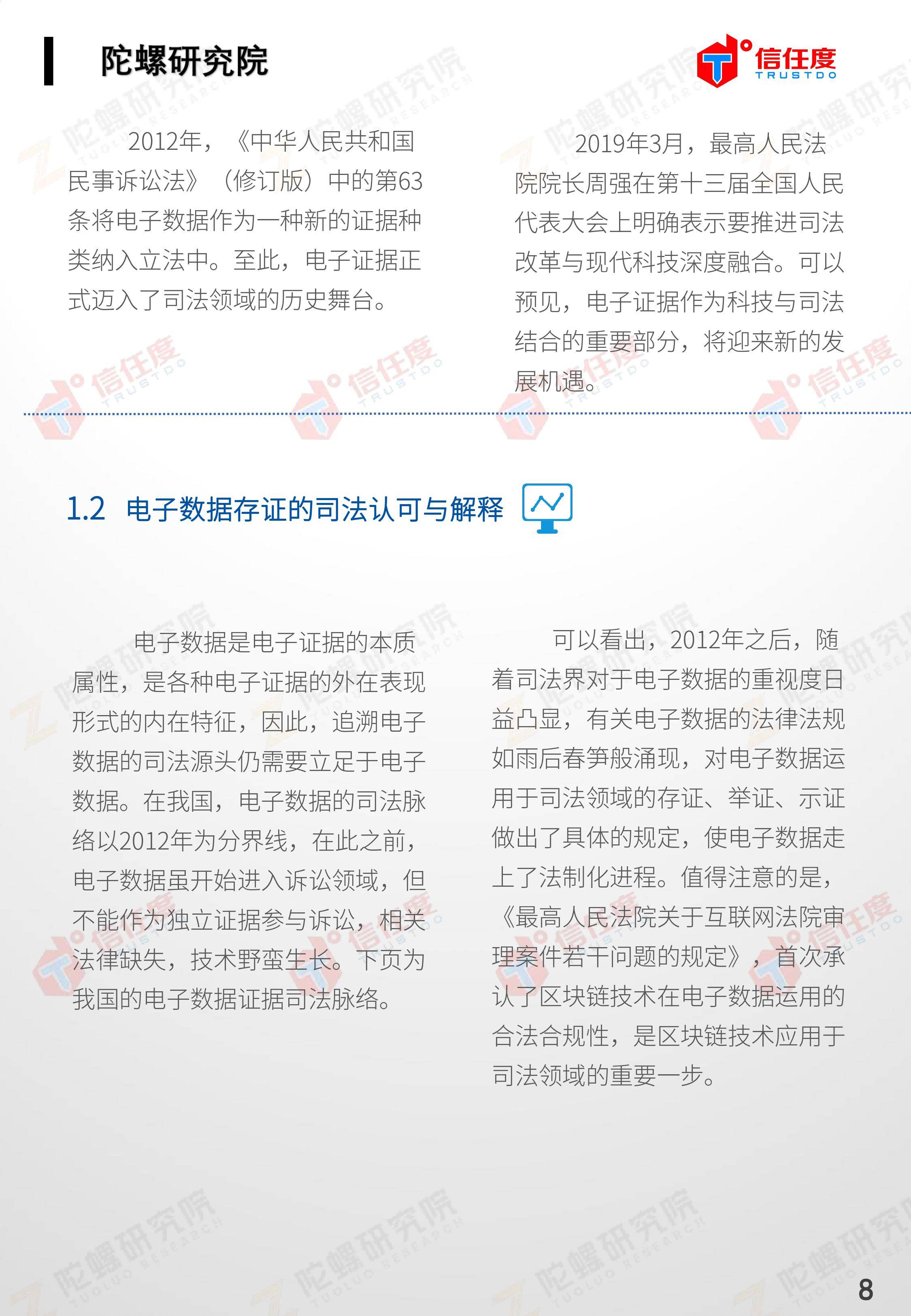 在此背景下,由陀螺研究院与北京信任度科技有限公司联合撰写,清华x-lab数权经济实验室、深圳市信息服务业区块链协会、碳链价值、网易区块链、商业科技观察、算力智库、数秦科技、火星财经、达瓴智库联合发布的《区块链司法存证应用报告》面市,本报告从电子数据存证背景入手,对当前电子数据存证司法应用存在问题进行了分析,介绍了区块链在电子数据存证中的应用价值,并针对区块链存证的应用场景与实际案例开展了深入研究,旨在加深社会大众对于区块链司法存证的理解,推动区块链在司法存证领域迸发出更大的价值。