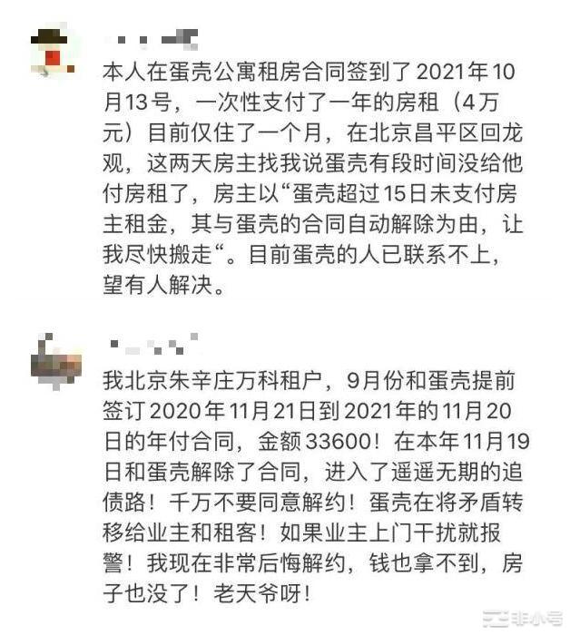 原来是因为一个叫蛋壳公寓的发生暴雷,事情的起因是这样的:蛋壳公寓因资金链出现问题,无法按时支付房东的租金;房东收不到钱要收回自己的房子,于是有人卸门换锁、强行赶走租户。租户更是委屈,自己已经交了一年房租,凭什么还没到期就要搬走?