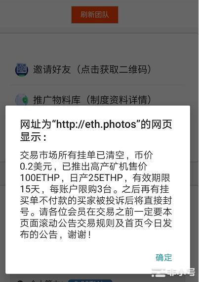 以太原力跑路征兆,上线不到半月就调整规则,币价腰斩:调整了两个重要规则第一:之前币价0.34U一个,现在0.2U一个。接近腰斩交易市场所有挂单已清空,币价0.2美元,已推出高产矿机售价100ETHP,日产25ETHP,有效期限15天,每账户限购3台。之后再有挂买单不付款的买家被投诉后将直接封号。市场开放提前2个小时关闭。
